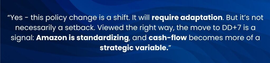 If you’re too dependent on Amazon’s cash-flow pipeline, a policy shift like DD+7 can amplify risk.