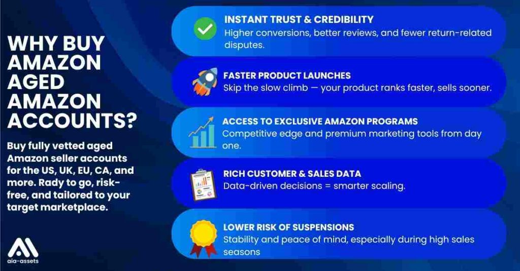 At AIA Assets, we provide fully vetted aged Amazon seller accounts for the US, UK, EU, CA and more—ready to go, risk-free, and tailored to your target marketplace.